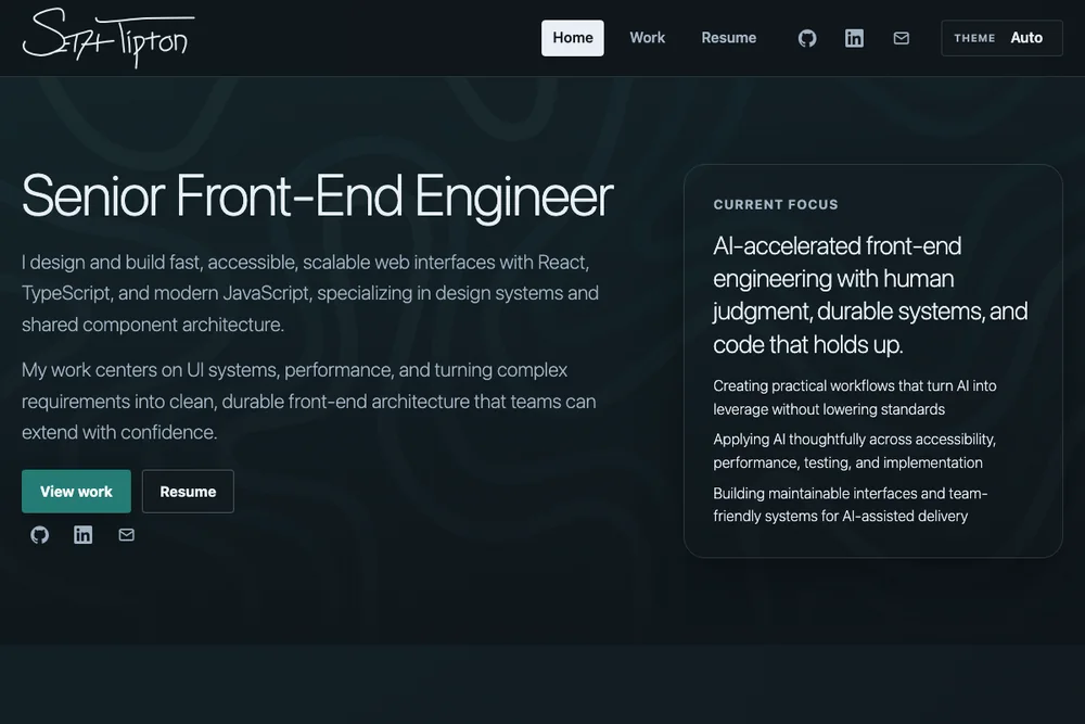 Built this site as a structured Astro publishing system for case studies, resume content, and front-end experiments, with a static-first setup that stays fast and easy to maintain.